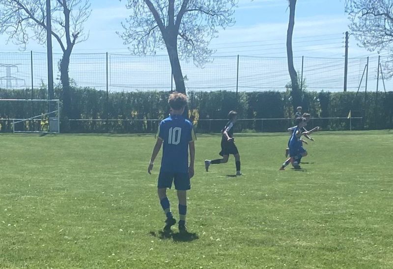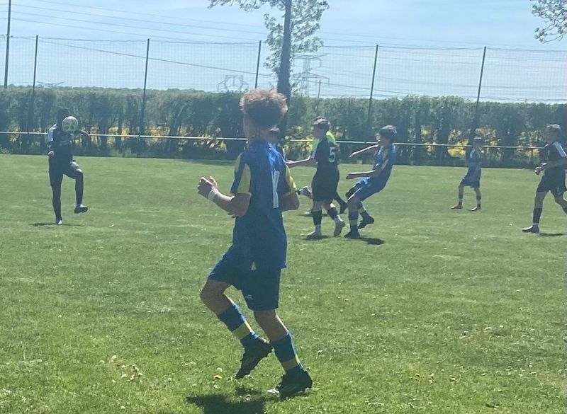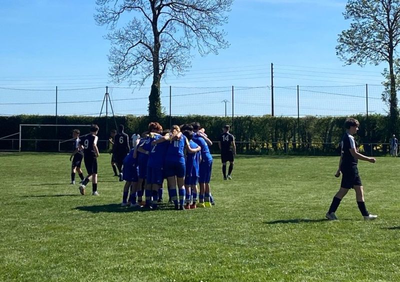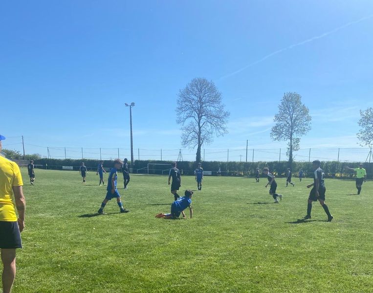 MVF à quelques occasions sur des contres et réussi à égaliser sur un cafouillage de la défense qui n’a pas réussi à sortir le ballon de ses 20m. 1-1 à la pause. Les petits bleus restent concentrés dans le vestiaire et entre eux se donnent des bons conseils pour entamer la seconde mi-temps sur les chapeaux de roues. Matys bien lancé en profondeur par Enzo crucifie le gardien pour le 2-1. MVF tente de revenir au score mais sans fin et sur une nouvelle occasion, Romain exploite la vitesse de Matys qui trouve le but 3-1. Dans la continuité Matys se fait faucher dans la surface et obtient un pénalty qu’il transforme, 4-1. On domine dans les duels et ce qui nous fait obtenir des corners. Enzo tire parfaitement l’un d’entre eux pour la tête de notre plus grand joueur😁 Romain qui décroise au 2ème poteau 5-1. MVF gratte un pénalty sur une main dans la surface suite à un centre et là notre Célestin plonge du bon côté pour détourner le ballon hors du but. Sur une des dernières offensives Matys déborde, rentre dans la surface et centre au 2ème poteau pour Arthur qui conclut et achève notre adversaire du jour 6-1.
