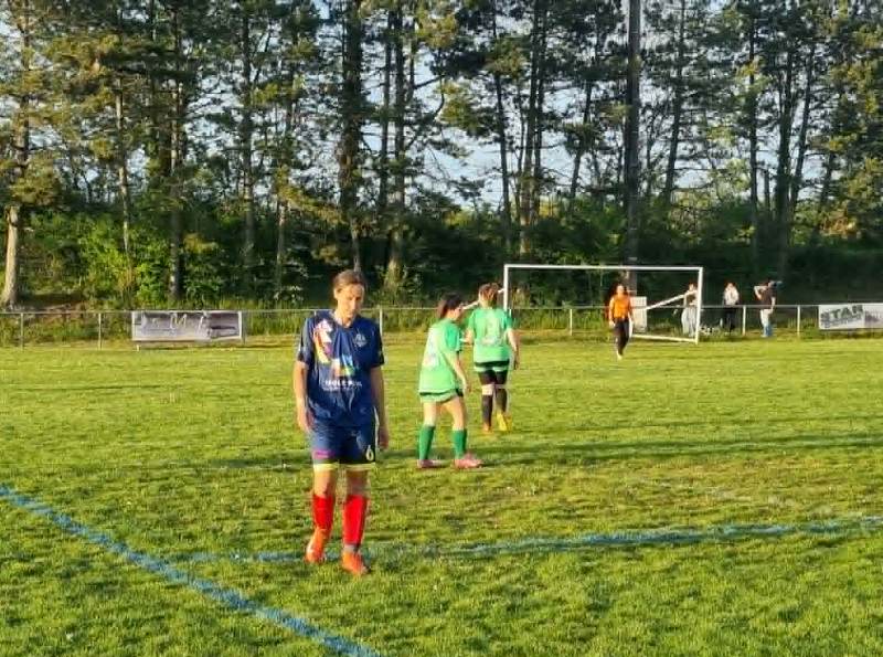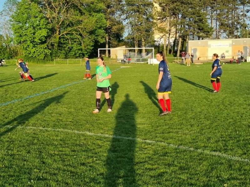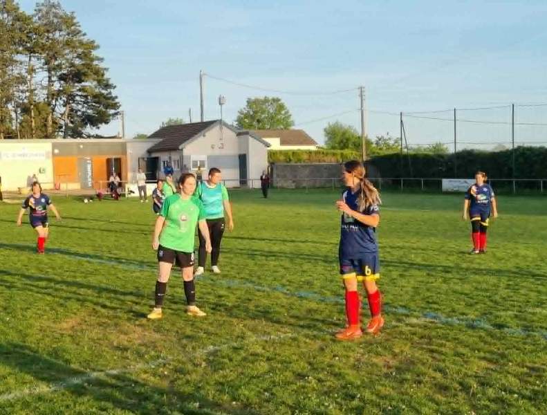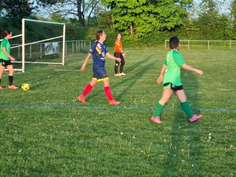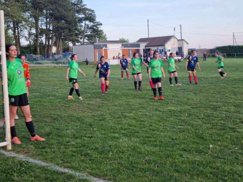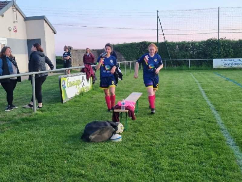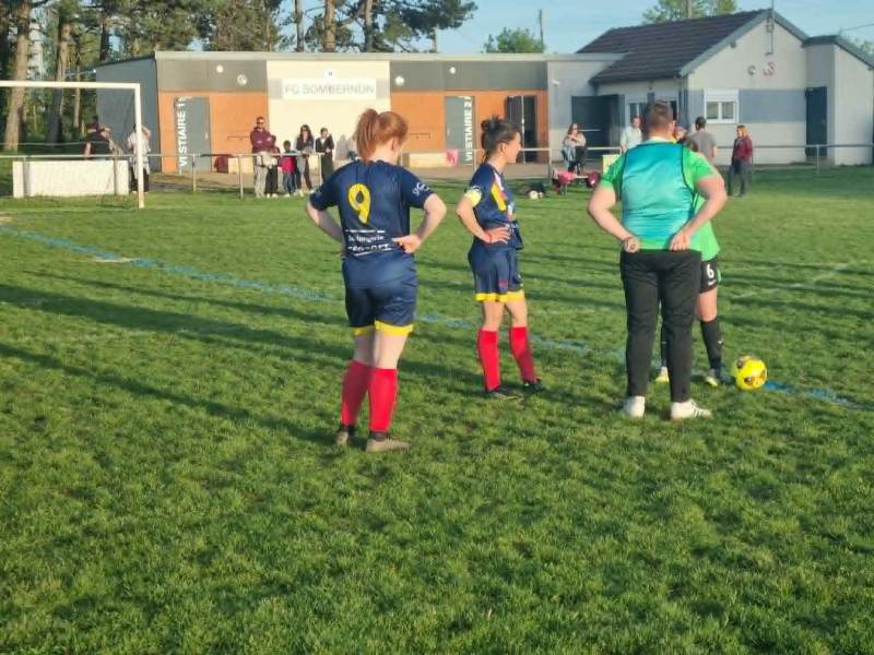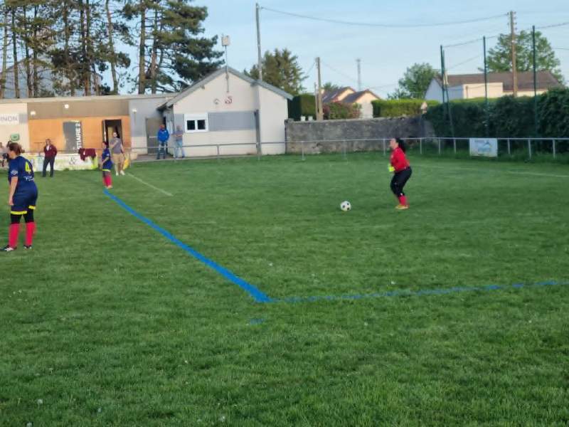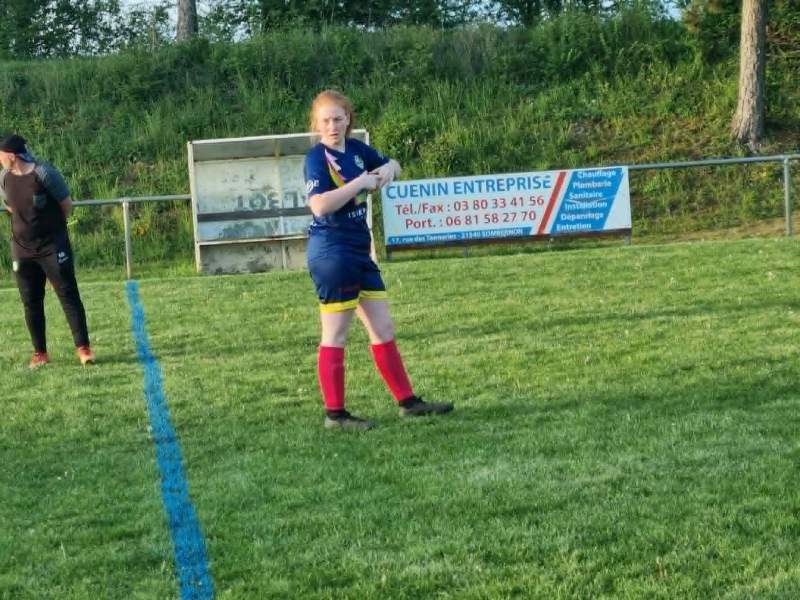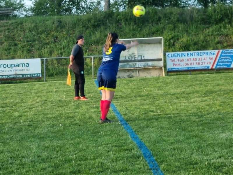 Les féminines du FC Sombernon-Gissey se sont imposées 5 à 1 face à Aignay le Duc à l’issue d’un match très plaisant à regarder. Les bleues prennent le match à leur compte et se crée rapidement des occasions par Amélie, Juliane ou Alice. Le ballon circule bien et elles vont trouver l’ouverture par Aline au deuxième poteau qui devance la gardienne sur un joli service de Juliane, 1-0. Un coup franc de Juliane échoue ensuite sur la transversale. La défense est sereine autour de Joana et Lorane. Julie gère tranquillement les pertes de balle adverse. En récupérant une frappe de Aline repoussée par la gardienne, Juliane ajuste un lob pour inscrire le deuxième but, 2-0. Score à la pause. La seconde période repart sur le même rythme. Aignay ne ferme pas le jeu et cherche aussi à jouer au sol. Le pressing du milieu bleu insuflé par Alice asphyxie les visiteuses. Sur une balle en profondeur Aline inscrit le troisième but d’un superbe lob de l’extérieur du pied pour devancer la gardienne. Amélie ne ménage pas ses efforts pour créer des brèches pour ses partenaires. Elle finit même par se faire faucher dans la surface. Mais le pénalty de Juliane est superbement repoussé par la gardienne. Qu’à cela ne tienne, après un gros travail de récupération de Xavière, cette dernière sert Juliane sur la côté gauche qui ajuste une frappe qui échoue sur le poteau. Sur le cafouillage qui suit, elle est là pour pousser dans les filets le ballon qui traînait, 4 à 0. Aline en fait voir de toutes les couleurs à son adversaire direct et obtient un coup franc. La frappe de Juliane rebondit juste devant la gardienne qui est surprise, 5 à 0. Aignay profite ensuite d’un petit relâchement pour réduire le score, 5-1. Un match qui va servir de référence à n’en pas douter ! Saïd et Guillaume peuvent être fiers de leurs troupes.