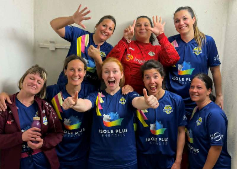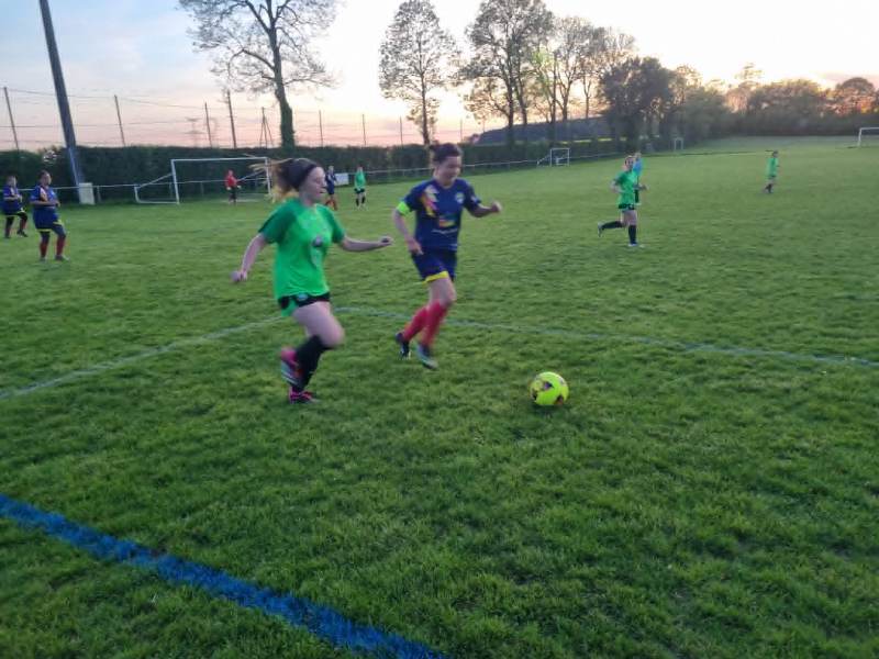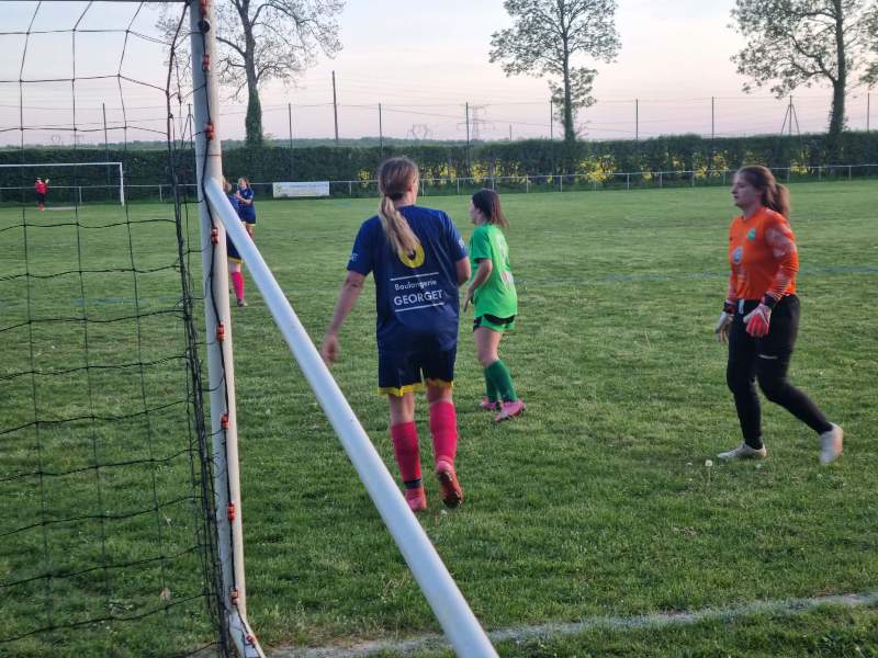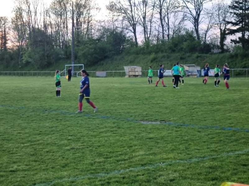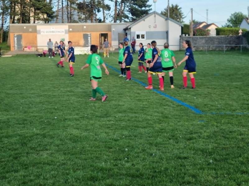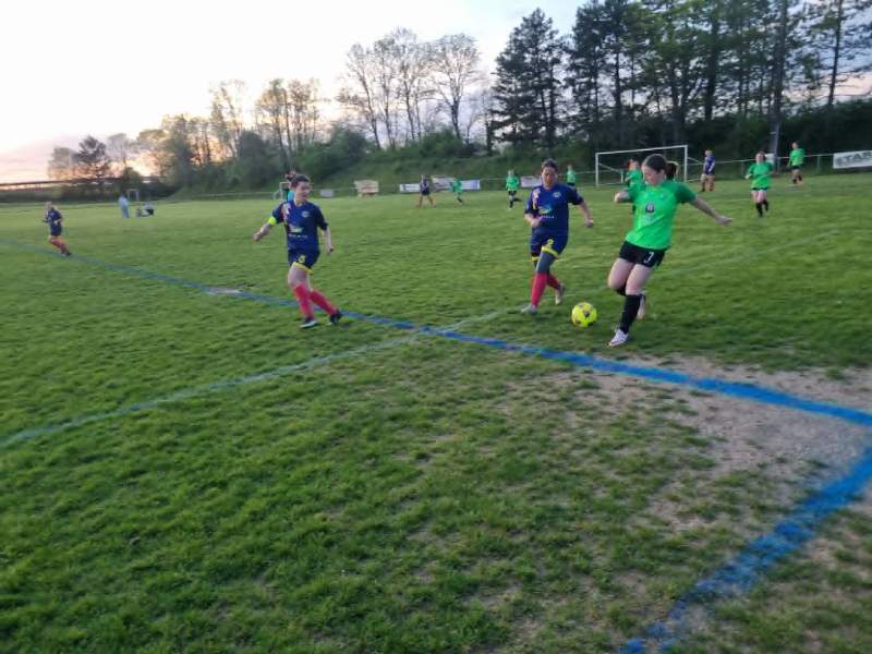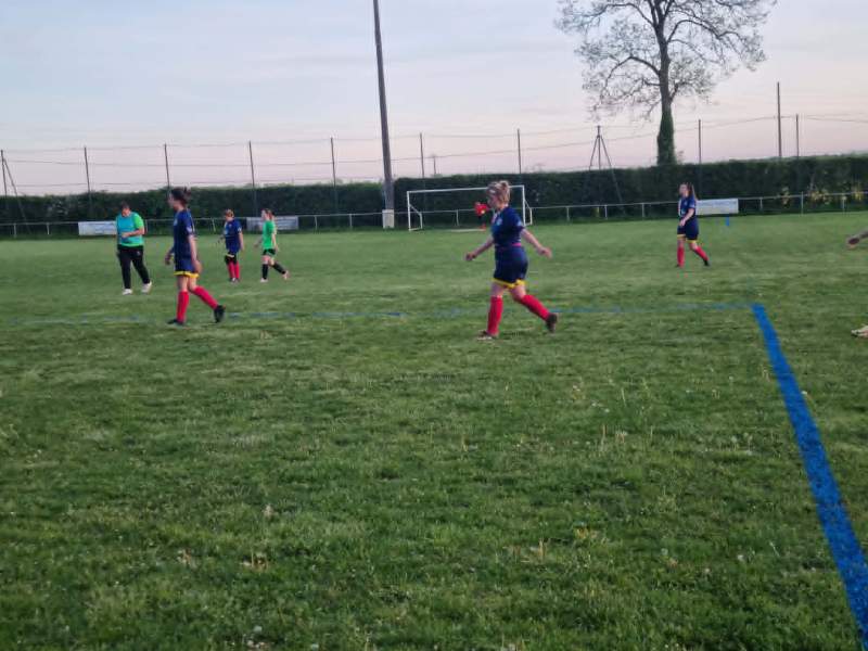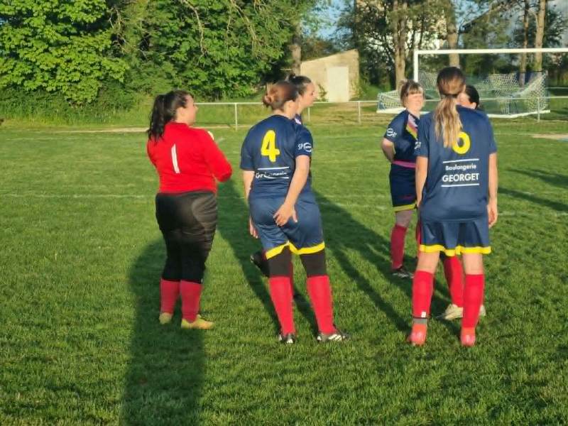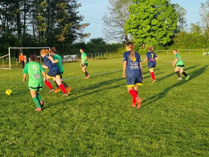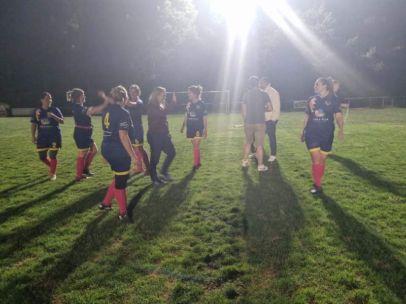 Les féminines du FC Sombernon-Gissey se sont imposées 5 à 1 face à Aignay le Duc à l’issue d’un match très plaisant à regarder. Les bleues prennent le match à leur compte et se crée rapidement des occasions par Amélie, Juliane ou Alice. Le ballon circule bien et elles vont trouver l’ouverture par Aline au deuxième poteau qui devance la gardienne sur un joli service de Juliane, 1-0. Un coup franc de Juliane échoue ensuite sur la transversale. La défense est sereine autour de Joana et Lorane. Julie gère tranquillement les pertes de balle adverse. En récupérant une frappe de Aline repoussée par la gardienne, Juliane ajuste un lob pour inscrire le deuxième but, 2-0. Score à la pause. La seconde période repart sur le même rythme. Aignay ne ferme pas le jeu et cherche aussi à jouer au sol. Le pressing du milieu bleu insuflé par Alice asphyxie les visiteuses. Sur une balle en profondeur Aline inscrit le troisième but d’un superbe lob de l’extérieur du pied pour devancer la gardienne. Amélie ne ménage pas ses efforts pour créer des brèches pour ses partenaires. Elle finit même par se faire faucher dans la surface. Mais le pénalty de Juliane est superbement repoussé par la gardienne. Qu’à cela ne tienne, après un gros travail de récupération de Xavière, cette dernière sert Juliane sur la côté gauche qui ajuste une frappe qui échoue sur le poteau. Sur le cafouillage qui suit, elle est là pour pousser dans les filets le ballon qui traînait, 4 à 0. Aline en fait voir de toutes les couleurs à son adversaire direct et obtient un coup franc. La frappe de Juliane rebondit juste devant la gardienne qui est surprise, 5 à 0. Aignay profite ensuite d’un petit relâchement pour réduire le score, 5-1. Un match qui va servir de référence à n’en pas douter ! Saïd et Guillaume peuvent être fiers de leurs troupes.