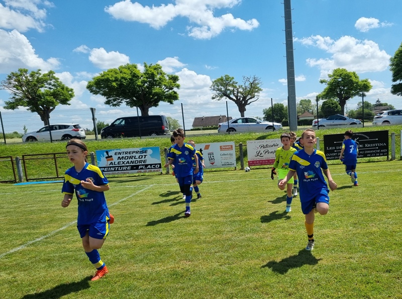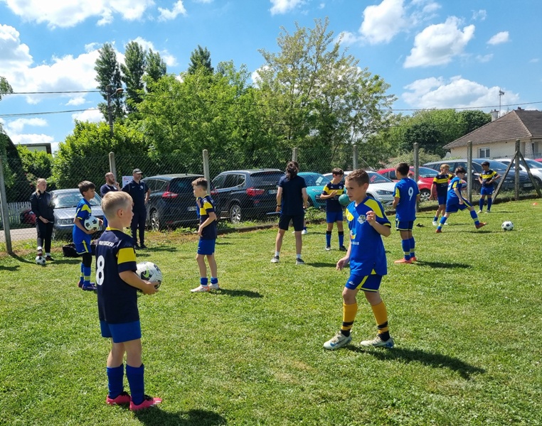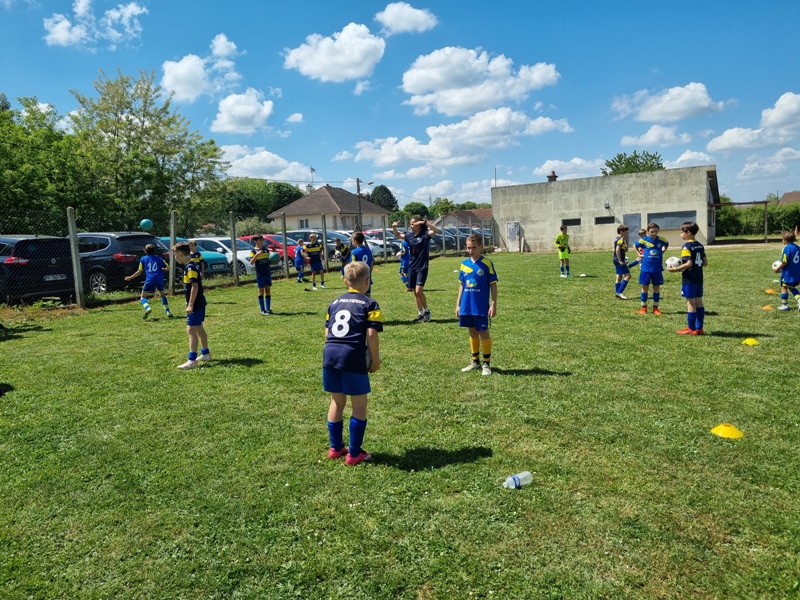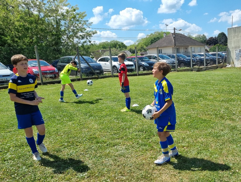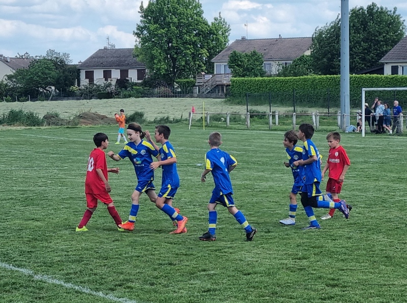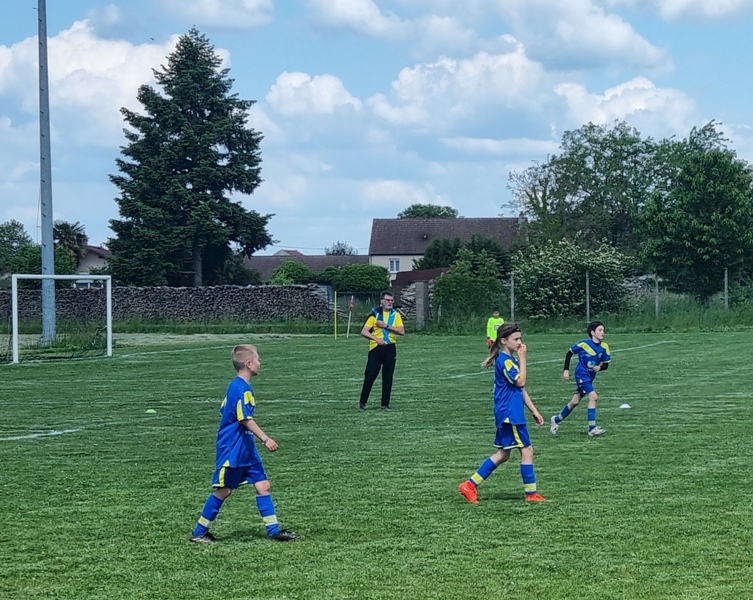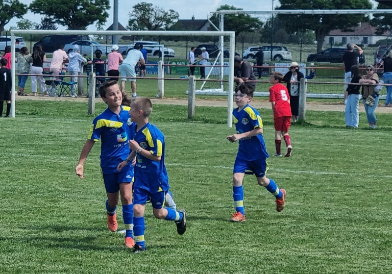Pour leur première participation à la finale des défis organisée à St Jean de Losne par le district de Côte d’Or, nos petits bleus ont régalé……pendant les matchs. Plutôt discrets lors des défis (1 victoire sur 4 défis), ils ont pratiqué un beau jeu collectif pour lequel ils ont été récompensé par 3 victoires et 1 match nul. 1 seul but encaissé. Quand ils sont tous décidés (en même temps….), on peut voir de quoi ils sont capables.