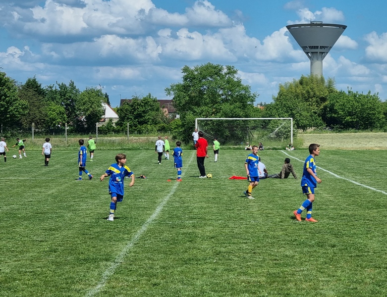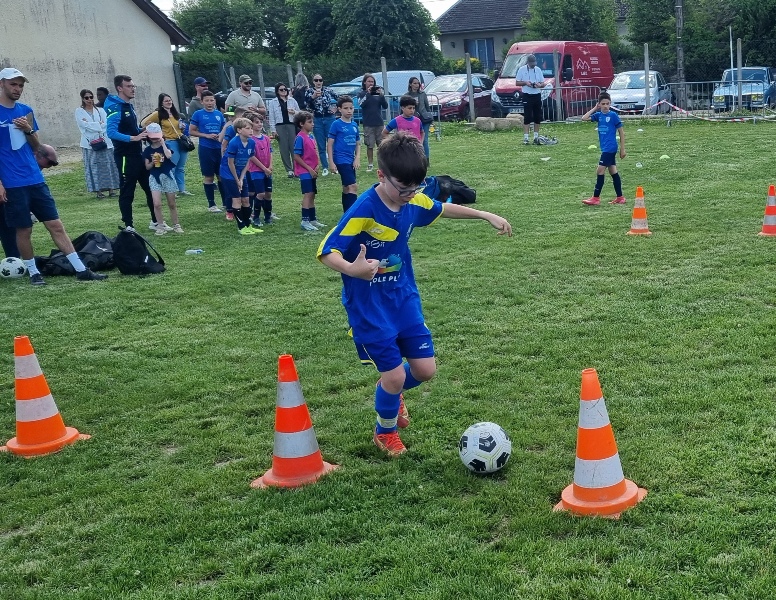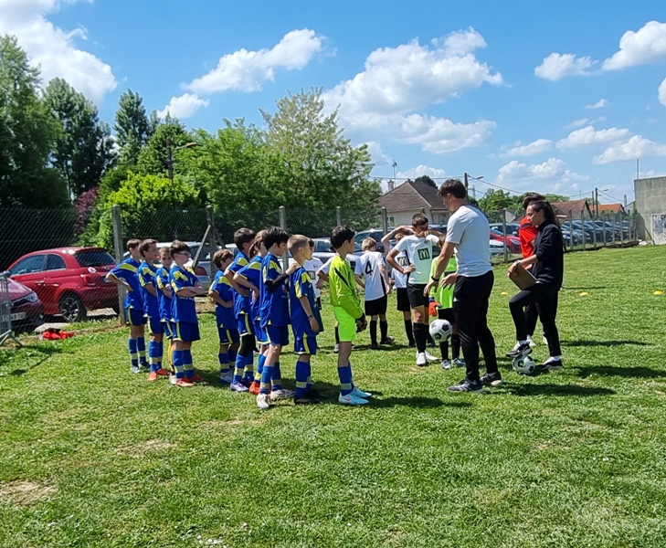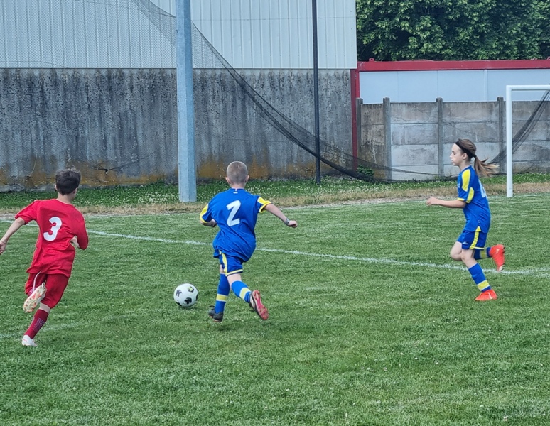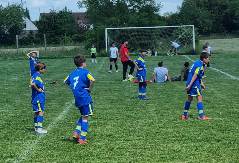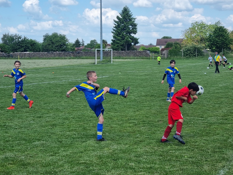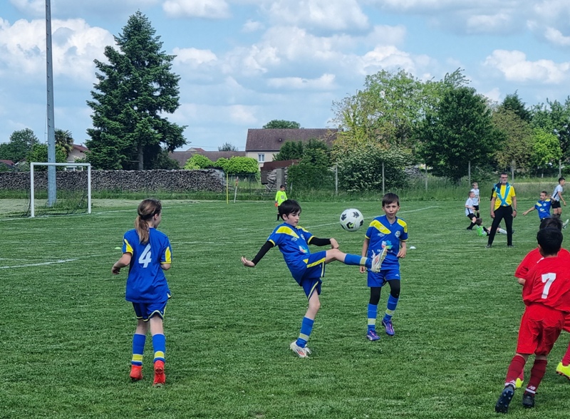 Pour leur première participation à la finale des défis organisée à St Jean de Losne par le district de Côte d’Or, nos petits bleus ont régalé……pendant les matchs. Plutôt discrets lors des défis (1 victoire sur 4 défis), ils ont pratiqué un beau jeu collectif pour lequel ils ont été récompensé par 3 victoires et 1 match nul. 1 seul but encaissé. Quand ils sont tous décidés (en même temps….), on peut voir de quoi ils sont capables.