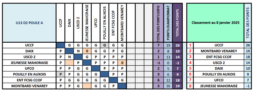 7 décembre 2024 : USC Dijon 2 bat FCSG-CCOF : 4 – 5